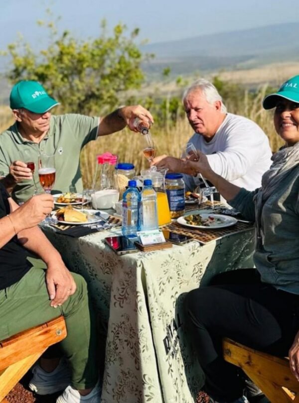 Your pilot expertly brings the balloon back to the ground where the EastLens Safaris team awaits with a traditional champagne celebration, marking your successful flight a cherished ballooning custom practiced worldwide. Toast to new memories, enjoy laughter with fellow travelers, and reflect on the wonder you’ve just experienced.